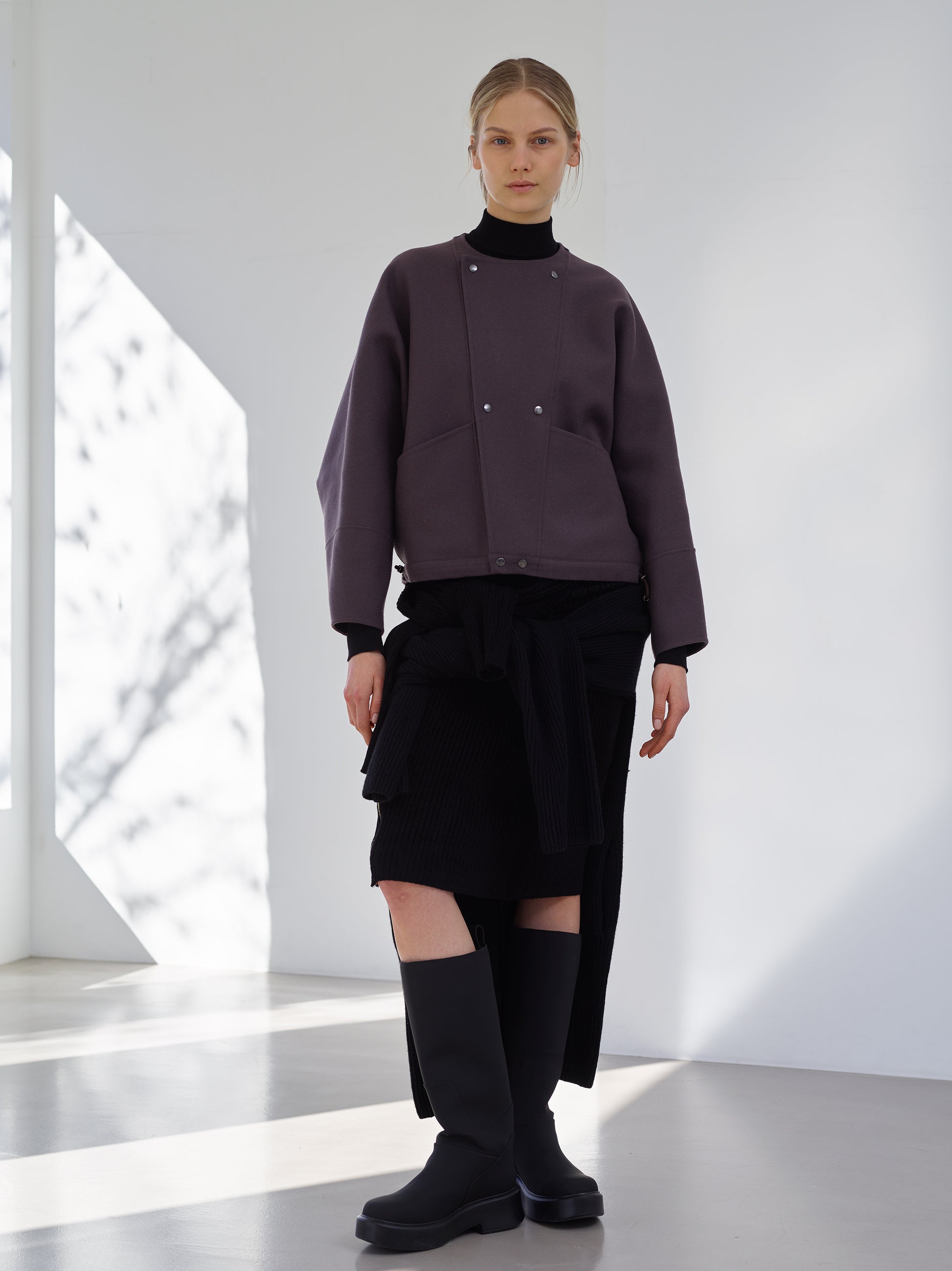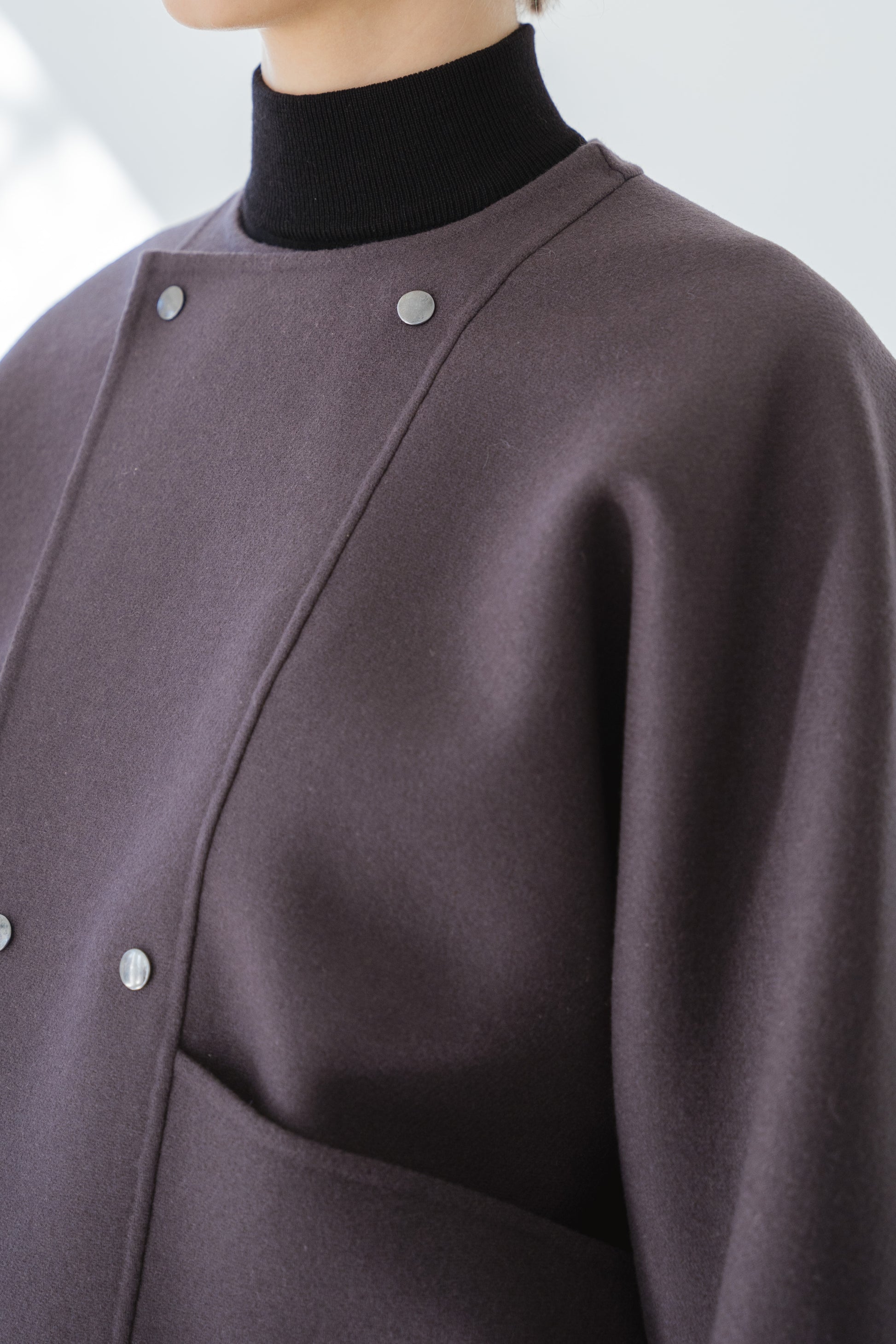 Super 110原料を使用し、暖かさと軽さを併せ持った二重織メルトン素材を使用しています。
