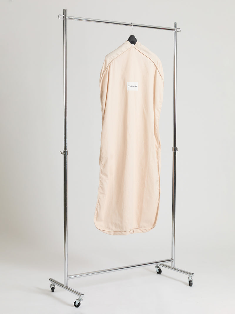 リサイクルボア×フェイクレザーのボンディング素材を使用しています。ケープのような分量感が特徴のシルエットになっています。襟元に1個のボタンで止めて着用するデザインです。