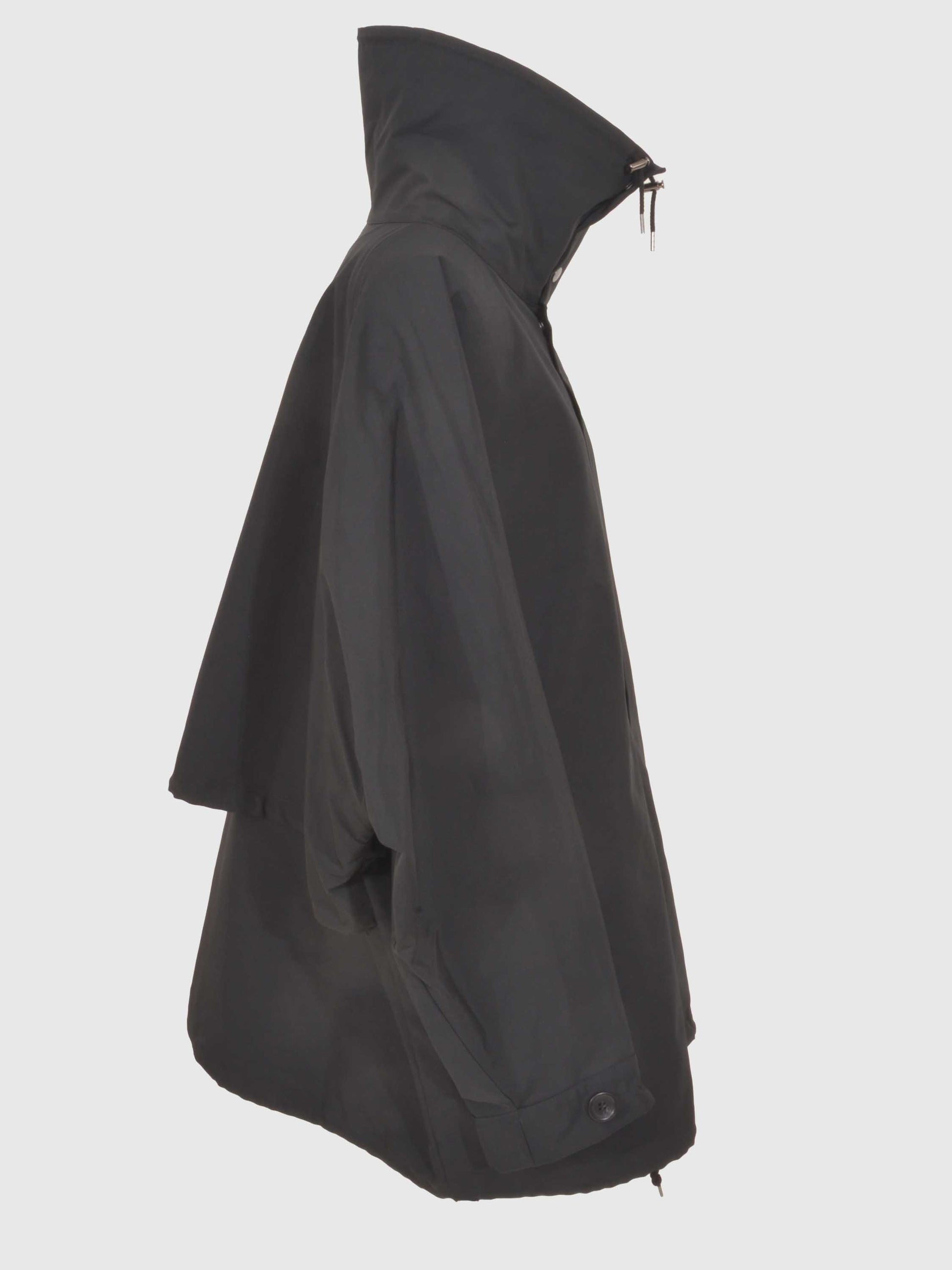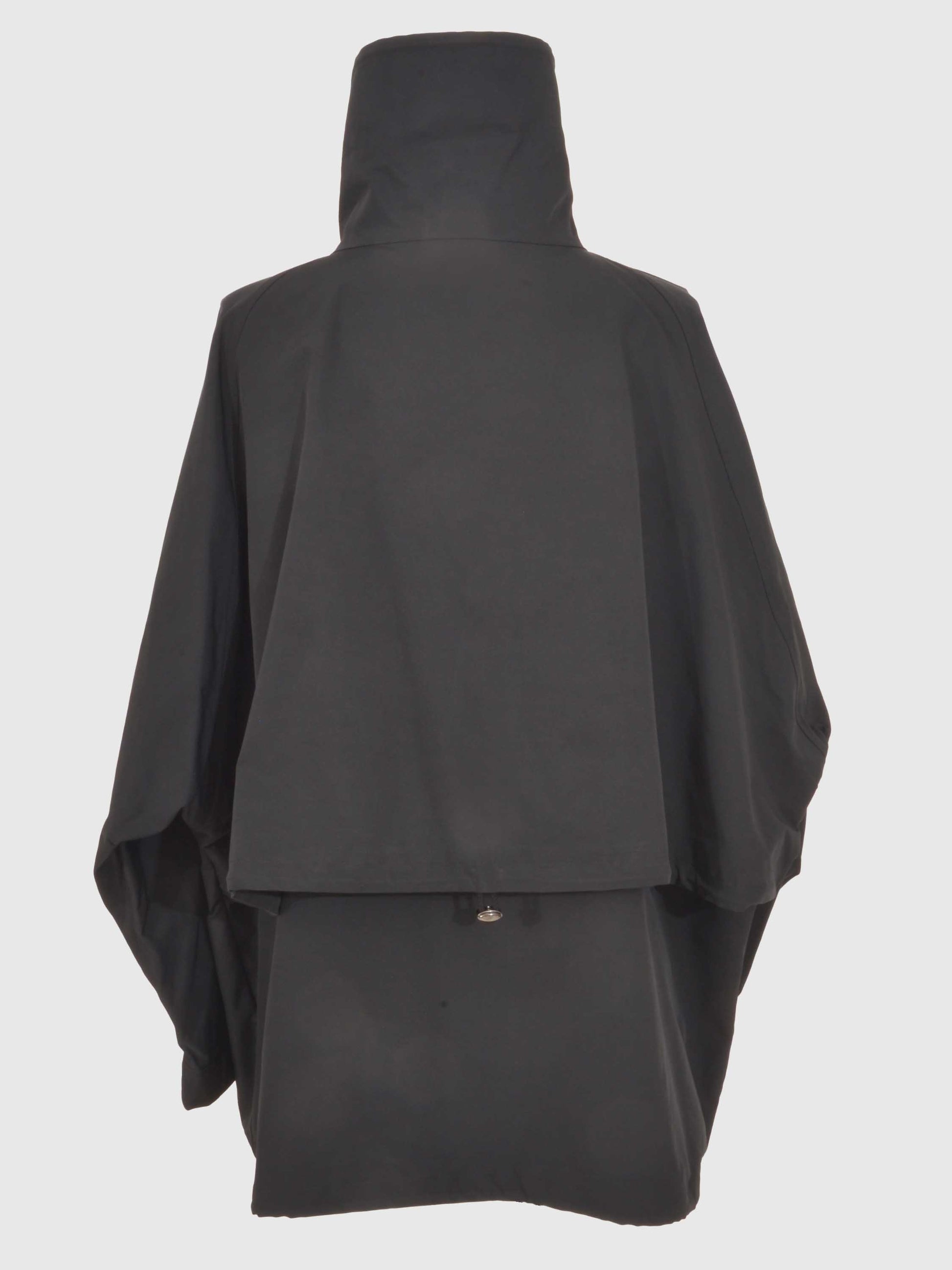 衿を太く、高く作ることでシルエットの特徴を出しています。裾をドローコードで絞ってシルエットの変化が楽しめる一枚です。